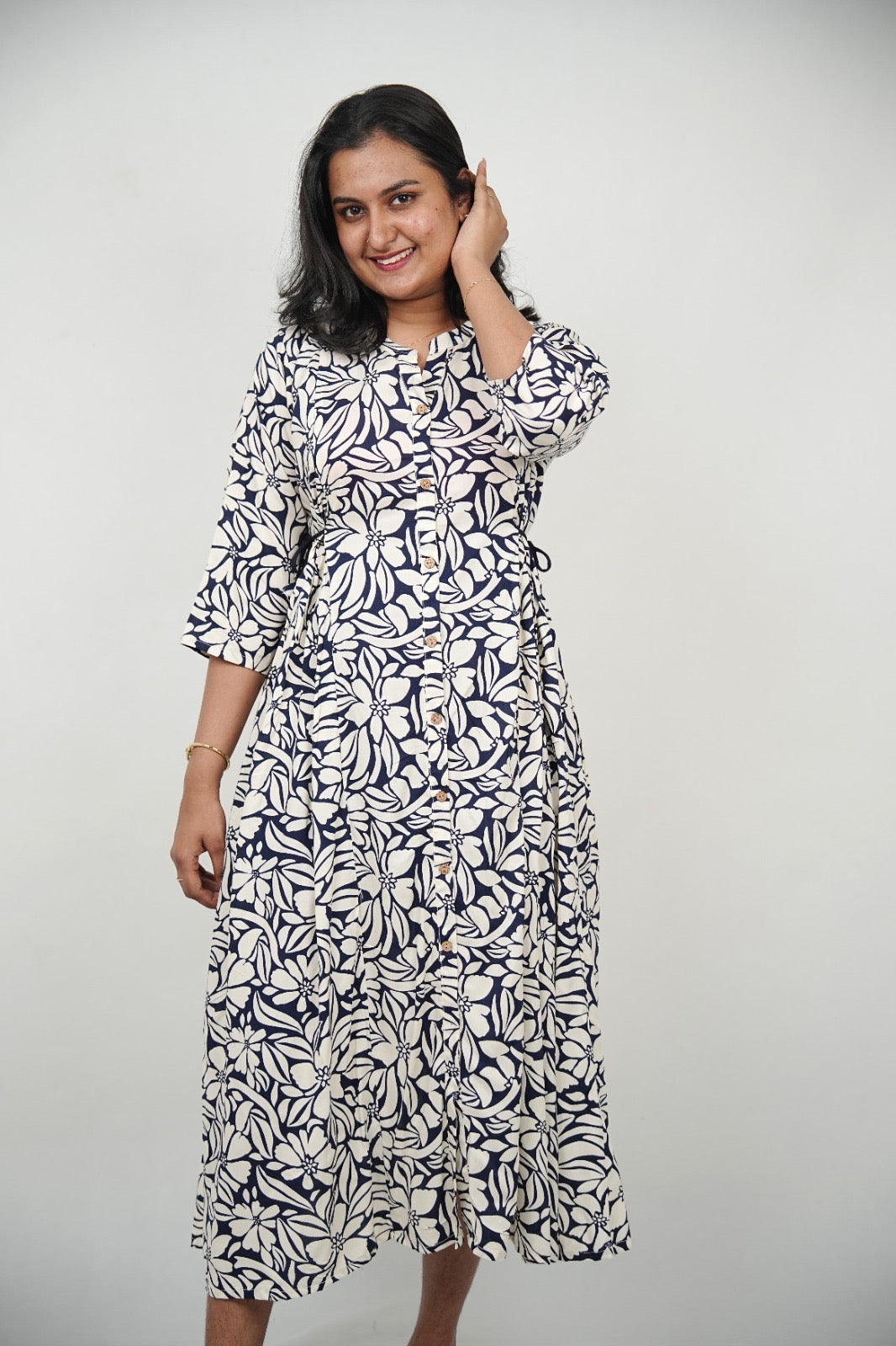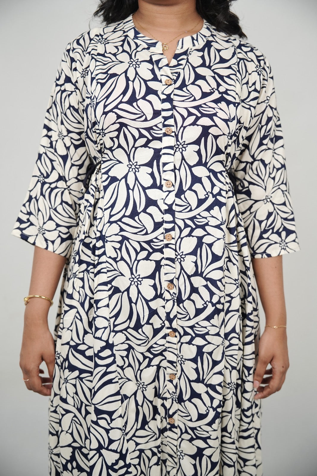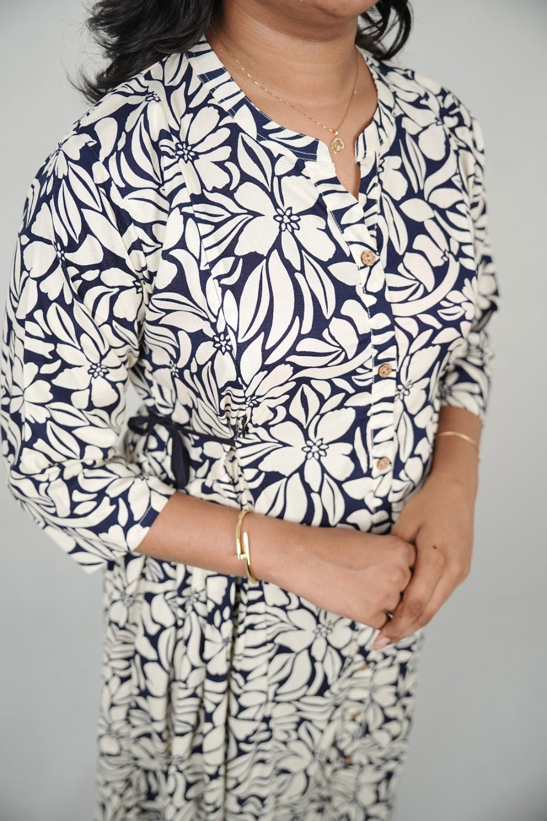 | Pattern | Detailed Navy & Cream Leafy Botanical Print |