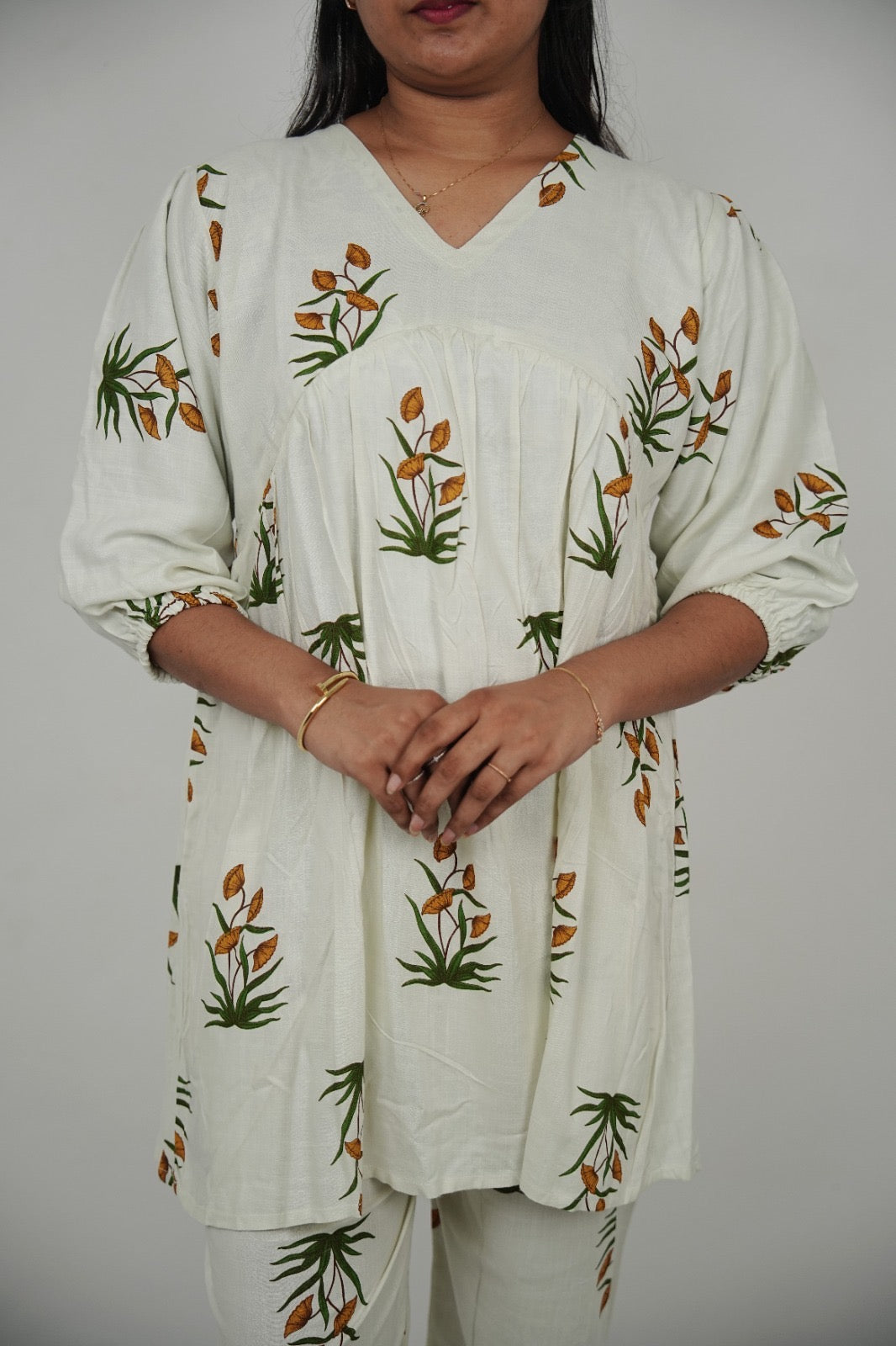 Ivory Floral Maternity & Feeding Friendly Soft Premium Rayon Cotton Coord Set