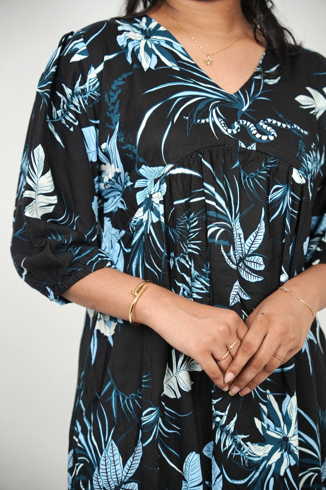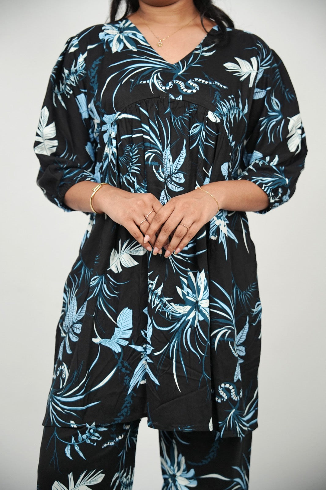 Midnight Blue Tropical Leaf Maternity & Feeding Friendly Soft Premium Rayon Cotton Coord Set