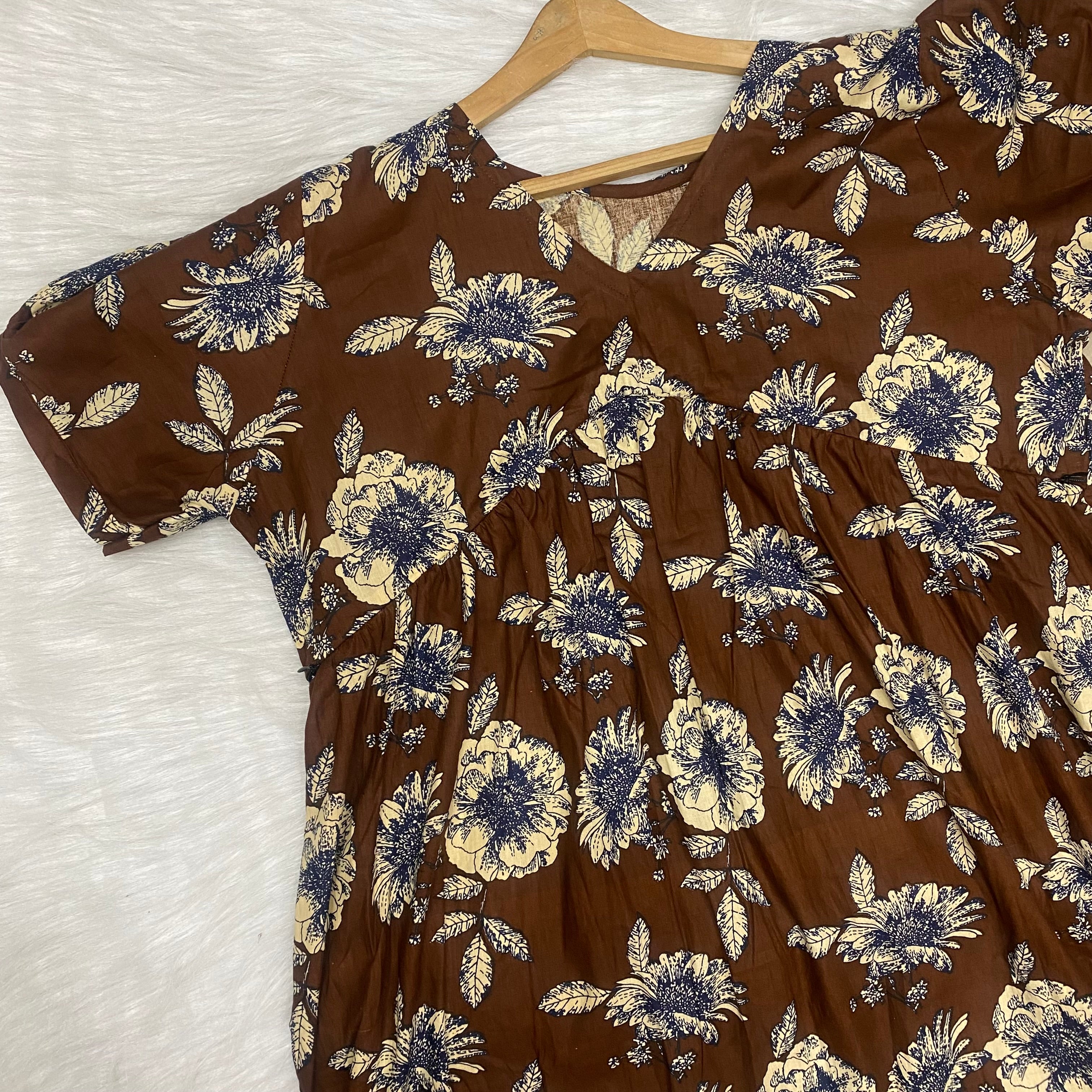 Feeding Frock Alia Cut, Free Size, Ankle Length, Tie-Up, Puff Sleeve Sleepwear in Softest Cotton Fabric (Bra Size 34"-38" | 50”-52″ length)