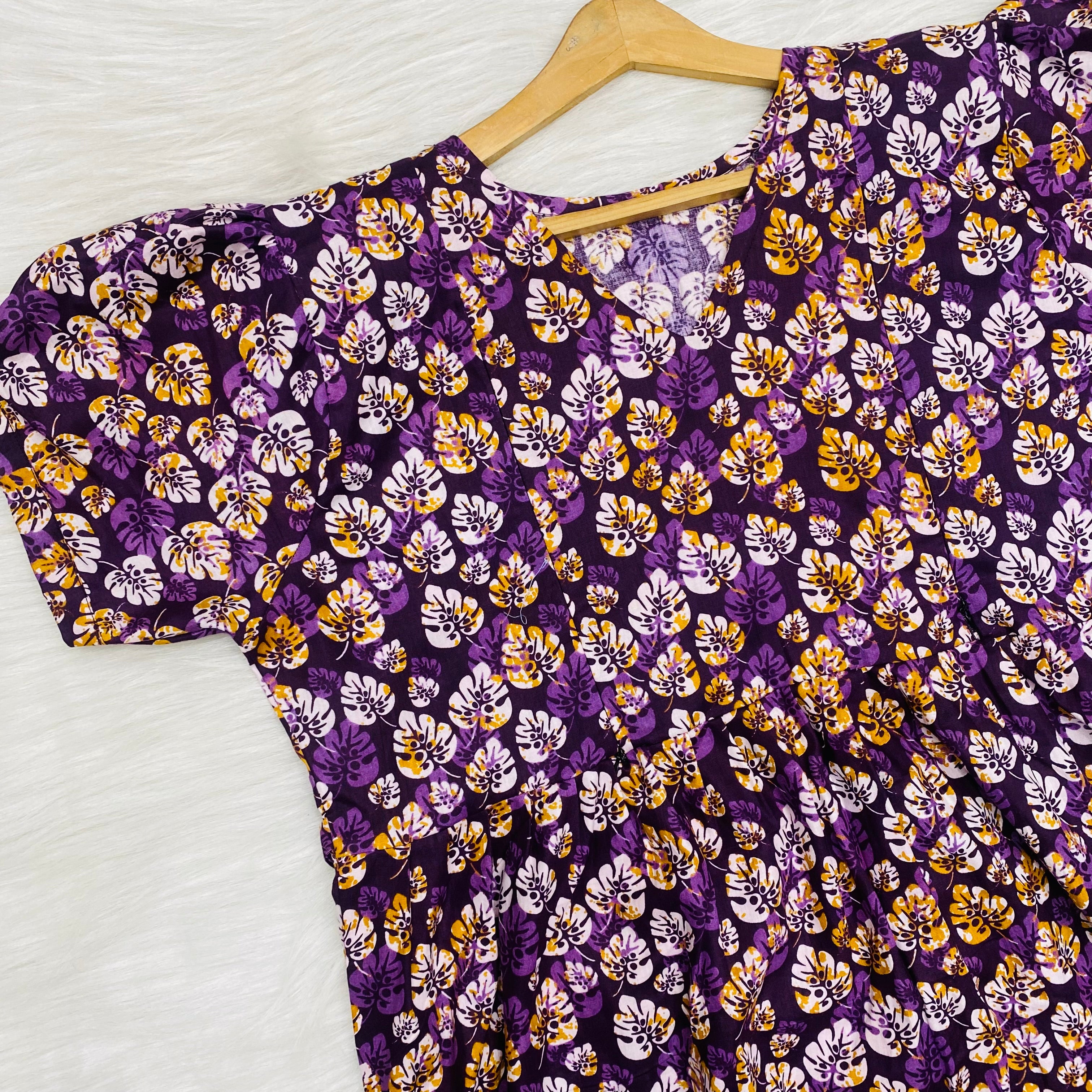 Frock Feeding Nighty, Free Size, Ankle Length, Tie-Up, Puff Sleeve Sleepwear in Softest Cotton Fabric (Bra Size 34"-38" | 50”-52″ length)