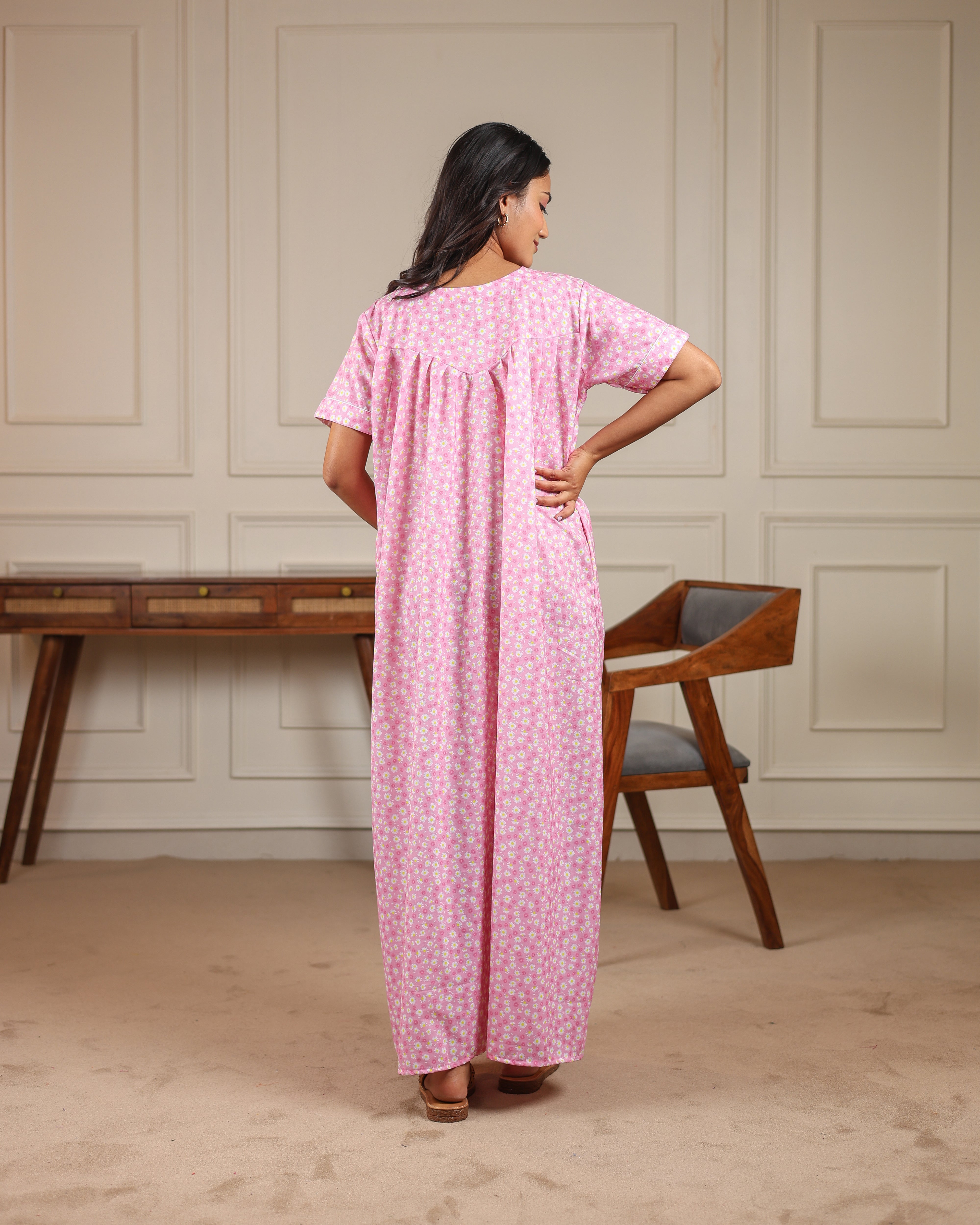 Elevate your maternity loungewear with this exquisite lace-detailed collection from She Wardrobe. These full-length gowns feature a delicate white lace yoke and a flattering pleated bust that provides ample room for your growing bump. For the postpartum phase, we’ve integrated high-quality concealed zippers, making nursing effortless and discreet. Crafted from our signature premium soft cotton, these pieces offer a cool, lightweight feel perfect for all-day comfort or a restful night's sleep.
