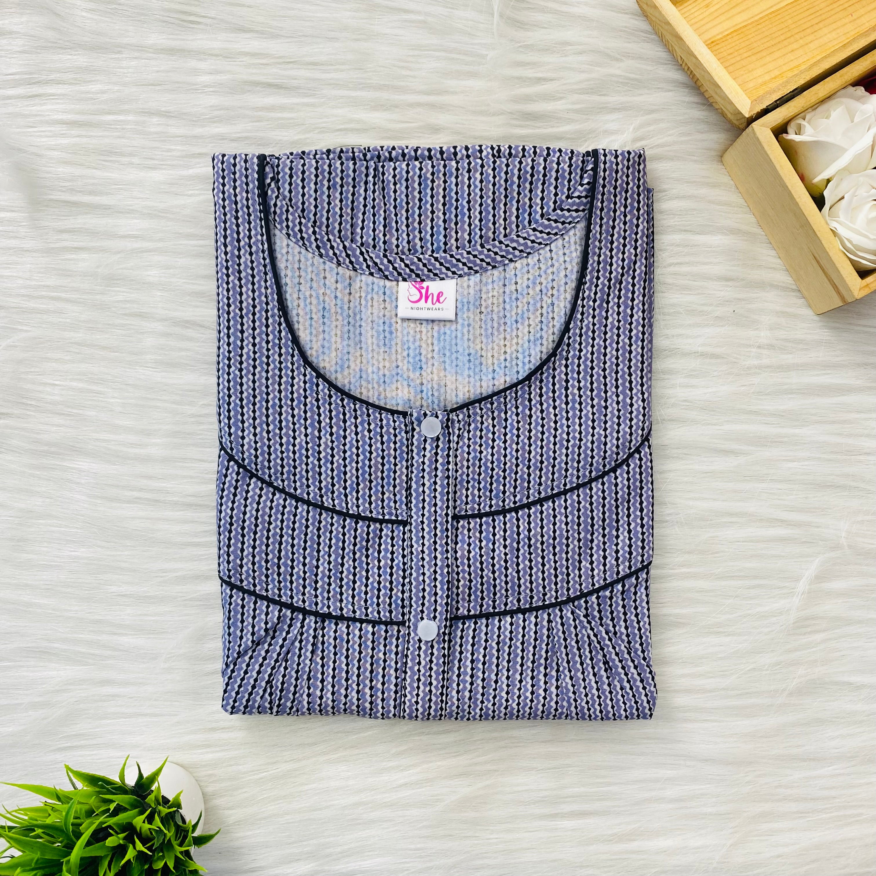 Long Zip Feeding Nighty, Free Size, Short Sleeve Sleepwear in Softest Cotton Fabric (Bra Size 34-38 | 54″-56″ Lengt