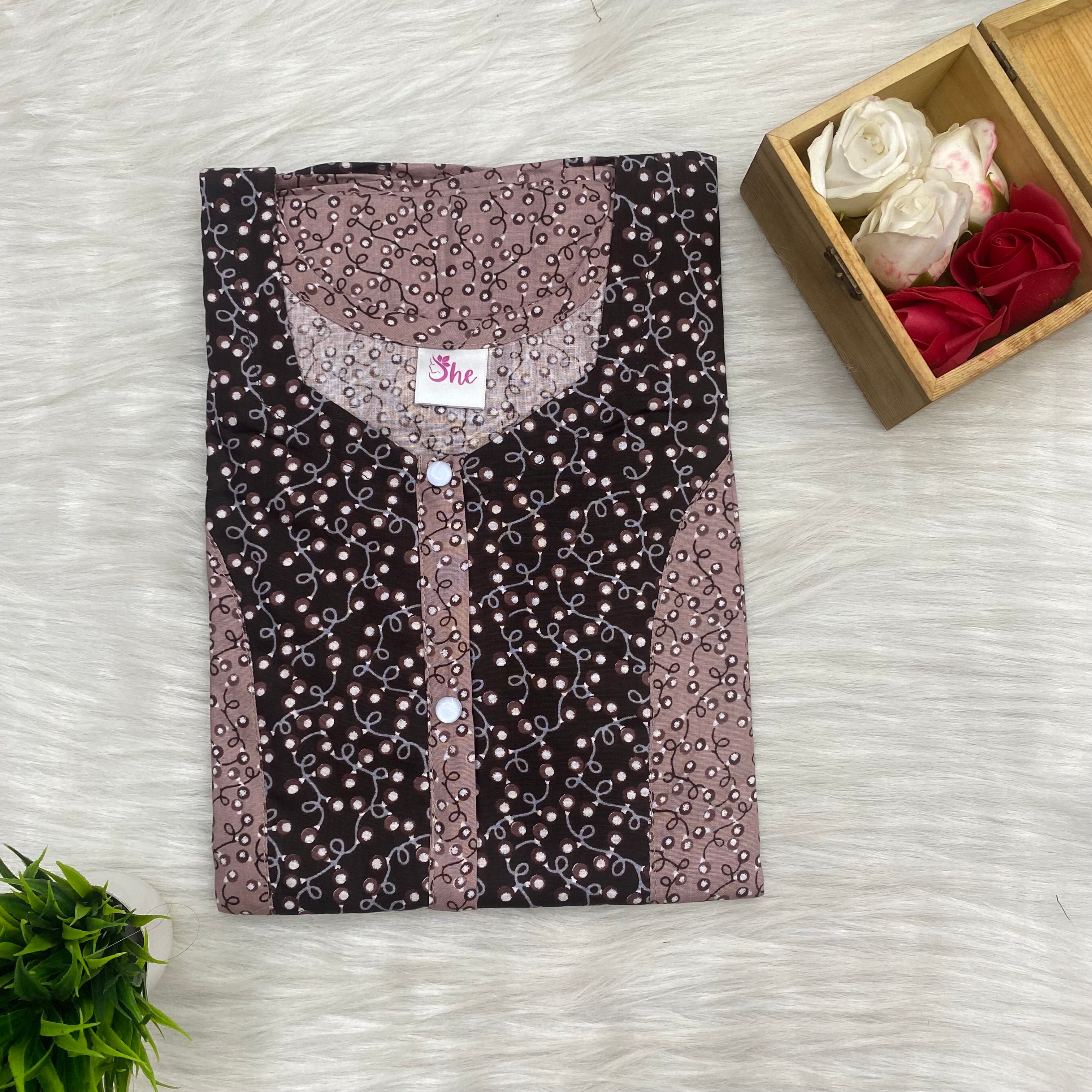 Long Zip Feeding Nighty, Free Size, Short Sleeve Sleepwear in Softest Cotton Fabric (Bra Size 34-38 | 54″-56″ Length