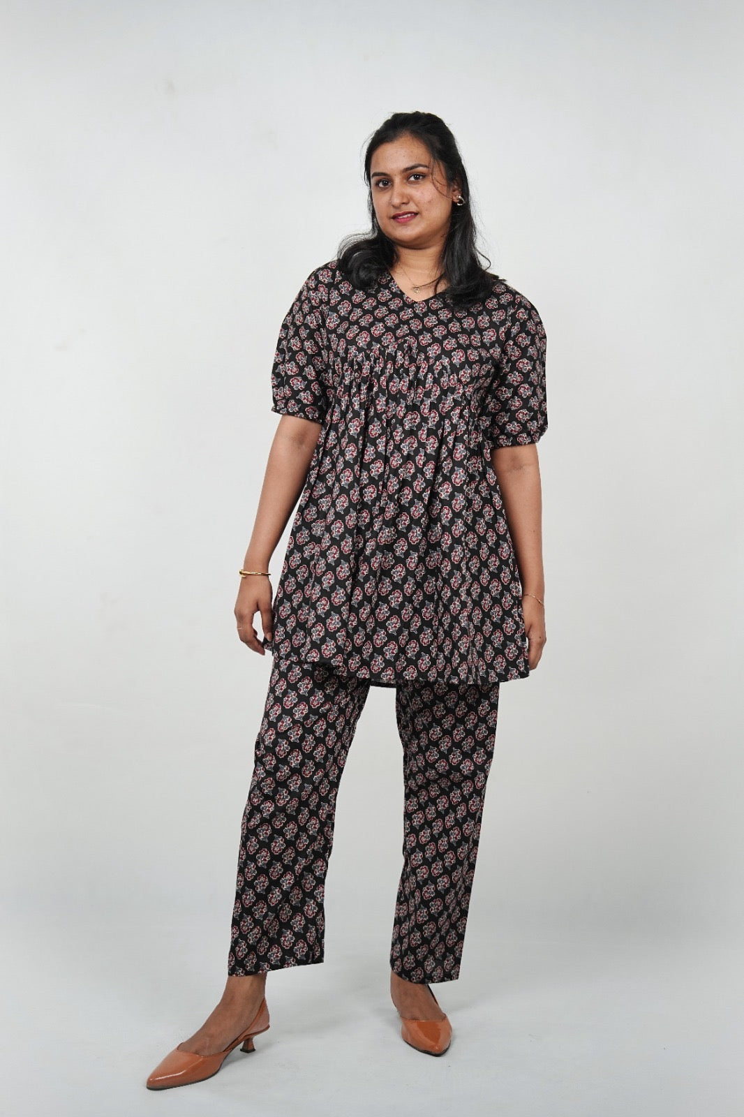 Classic Black Floral Maternity & Feeding Friendly Soft Premium Rayon Cotton Coord Set