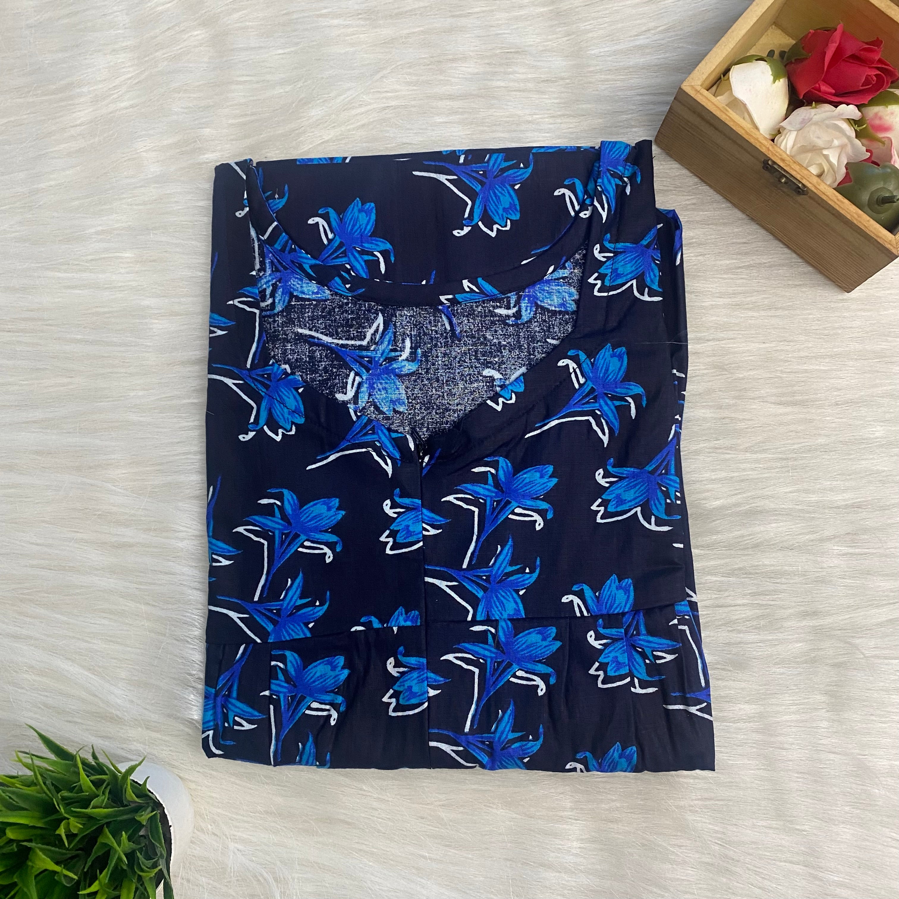 XXL Long Zip Feeding Nighty, Short Sleeve Sleepwear in Softest Cotton Fabric (Suitable for Bra Size 38”-42” | 56 length)